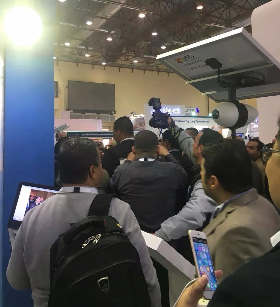 當然源碼的魅力絕不僅僅于此,源碼太陽能智慧路燈的驚艷更在于擁有“智慧的大腦”,即擁有著十大核心技術的智能監測與控制系統。源碼在太陽能路燈領域的強大技術吸引了一大批埃及大學生團體,教授更是現場教學,用源碼太陽能智慧路燈為學生講解著太陽能路燈未來的發展趨勢。