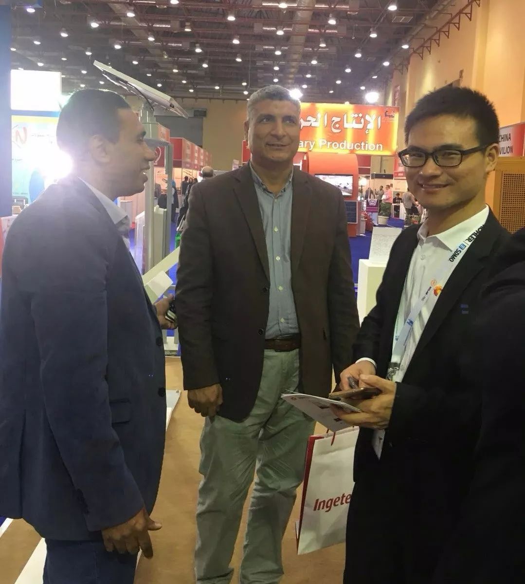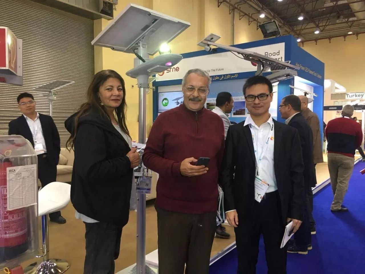 埃及是非洲工業較發達國家之一,中埃友好關系也由來已久,特別是隨著中國“一帶一路”倡議的提出,中埃在能源、交通設施及通訊領域將有著更多的合作。源碼太陽能智慧路燈作為中國品牌積極響應國家“一帶一路”倡議,攜系列產品亮相了這一盛大的展會。