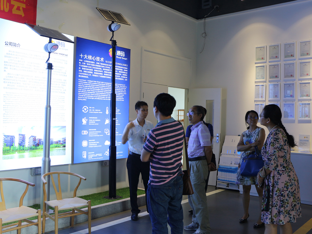 簽約后,郭院長(zhǎng)帶隊(duì)參觀源碼展廳,在展廳內(nèi),源碼技術(shù)人員演示了源碼太陽(yáng)能路燈的物聯(lián)網(wǎng)遠(yuǎn)程控制技術(shù),利用網(wǎng)絡(luò)實(shí)現(xiàn)遠(yuǎn)程監(jiān)控和控制燈具,通過(guò)采集的數(shù)據(jù)分析,實(shí)時(shí)調(diào)節(jié)燈光的明暗和色溫。通過(guò)手機(jī)APP藍(lán)牙連接燈具,讀取燈具狀態(tài)和參數(shù)設(shè)置情況,調(diào)整燈具的亮度,工作模式等,對(duì)源碼太陽(yáng)能路燈進(jìn)行遠(yuǎn)程控制,此外,技術(shù)人員現(xiàn)場(chǎng)演示春繭燈的娛樂(lè)管理功能,當(dāng)優(yōu)美的音樂(lè)旋律從春繭燈中傳來(lái),郭院長(zhǎng)一陣稱贊。