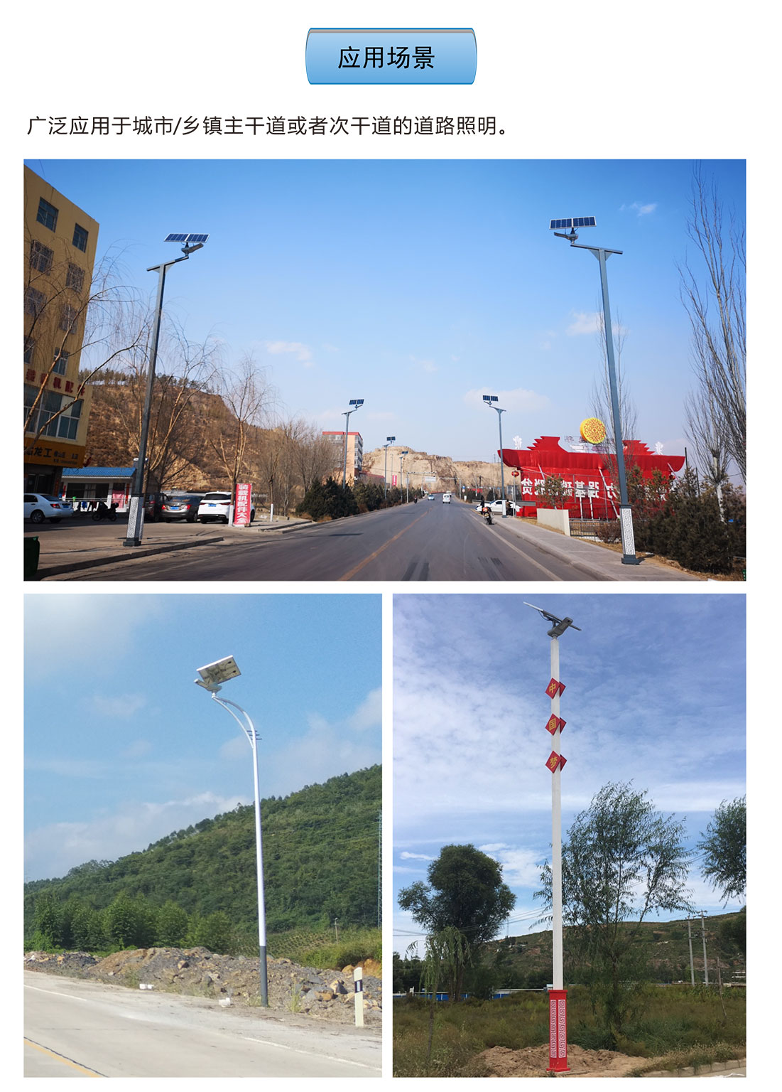 駿馬燈屬于中高端定位的中大功率太陽能智慧路燈,被廣泛應用于城市或鄉鎮主干道或次干道,以及工業園區、廣場等場景。